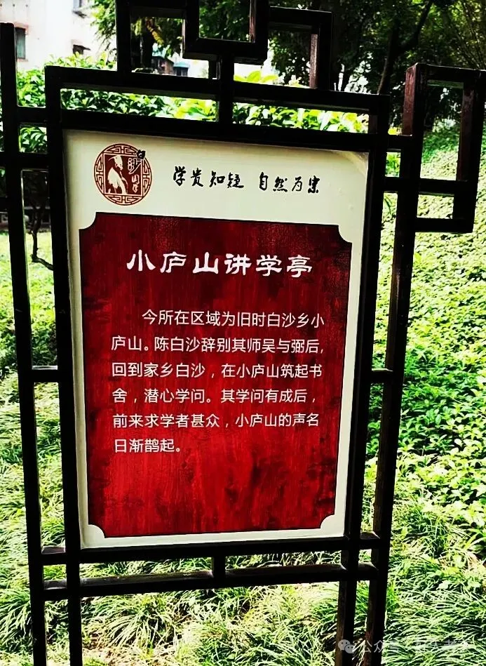 陈白沙(1428-1500):广东江门人,本名陈献章,别号白沙子,故后人称陈白沙。1454年陈白沙前往江西临川,师从吴与弼学习程朱理学。1466年再入国子监学习,才学出众名噪一时。1468年归乡,创建小庐山书院讲学。