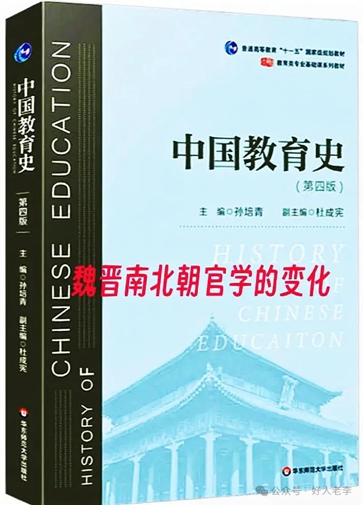 在各种文化思潮云卷云舒中,官学一直存在。 司马炎建晋后,对官学体系做了改革。他把传统太学一分为二,一部分称“国子学”,主要教育五品以上官僚及子弟,最高长官称“国子祭酒”;另一部分仍称太学,面向六品以下官僚及子弟。 杨坚称帝后设国子寺,既管理国子学、太学等学府,又总览教育行业。这是中国古代教育制度重要变革,也是中国历史上第一次出现教育管理机构。